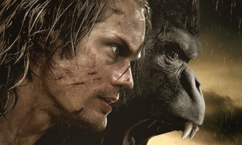Alexander Skarsgard es el protagonista de este primer cartel en el que le vemos tras la colosal e imponente figura de gorila que enseña sus fieros colmillos.