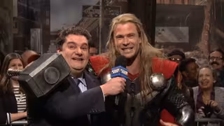El eufórico Thor se mueve de un lado para otro mientras por el micrófono pasan el resto de Vengadores. El colaborador de SNL, Taran Killam se convierte en Tony Stark/Iron Man y Pete Davidson es el encargado de dar vida a un confuso Bruce Banner: "Creo que me he comido a un hombre". También aparecen Nick Fury (Jay Pharoah) y Capitán América (Beck Bennett).