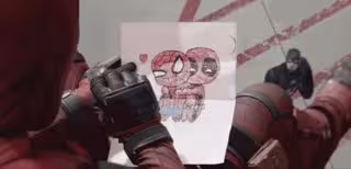 Las líneas de guión son parte de las conversaciones entre Peter Parker y Tony Stark, exactamente en el momento en el que el millonario visita la casa del joven estudiante en Queens. Por su parte, las escenas de Deadpool corresponden al inicio de la cinta de Tim Miller, en la que Wade Wilson espera la llegada de los malos haciendo un dibujo de cómo planea matarlos.