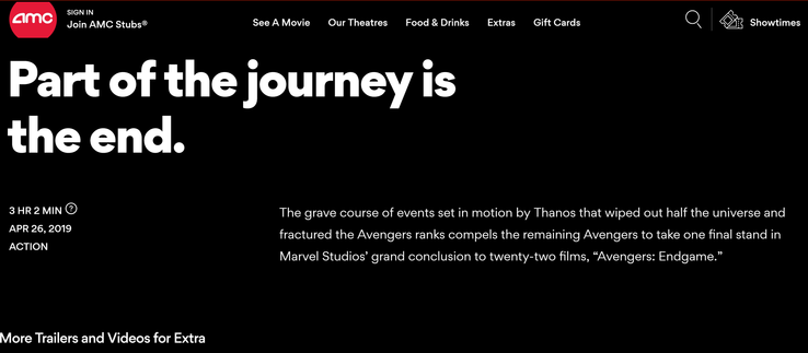 AMC Theatres ha publicado que la duración de Endgame será de tres horas y dos minutos, según informa CBR. El sitio web ha retirado la información, pero hay capturas que dejan constancia de que la empresa de exhibición cinematográfica habría revelado la duración de la película accidentalmente. A AMC Theatres se le ha unido Fandango, que ha publicado un tuit indicando el metraje de Endgame.