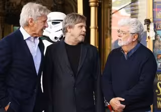 Mark Hamill, Harrison Ford y George Lucas en The Hollywood Walk of Fame - 2018 GETTY IMAGES - Archivo