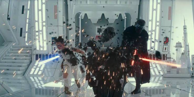 Por razones desconocidas, Rey y Kylo Ren se dirigen a los restos de la Estrella de la Muerte en Endor. Una toma muestra que ambos alcanzarán el corazón de la Estrella de la Muerte: la Sala del Trono del Emperador.