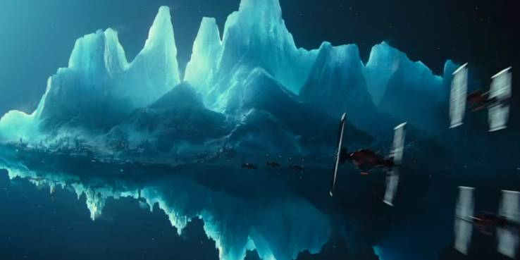 Una de las tomas más impresionantes muestra a un Destructor Estelar Imperial saliendo del hielo. Anteriormente ya se confirmó que el Emperador tiene una enorme flota de Destructores Estelares, que parecen poseer la tecnología de la Estrella de la Muerte integrada en sus sistemas.