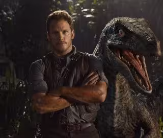 En otra de las instantáneas se puede ver a Chris Pratt posando como domador de velociraptores y en la tercera se puede ver en detalle estos siniestros dinosaurios que prometen dar guerra en esta nueva película.