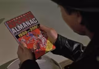 La secuencia en cuestión es aquella en la que Marty, el personaje de Michael J. Fox ojea lo que en principio cree que es el Almanaque con los resultados deportivos... pero en su interior se encuentra la revista para adultos 'Oh La La' donde se encuentra con las imágenes de señoritas ligeras de ropa.