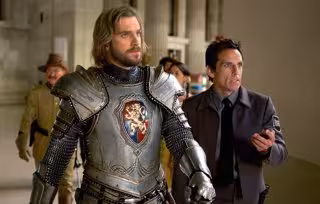 Y es aquí donde el clip nos muestra un primer vistazo a los seres vivientes del famoso museo de Londres: Enemigos, como los esqueletos de distintos dinosaurios, y nuevos amigos, como el caballero de la mesa redonda, Lancelot (Dan stevens).