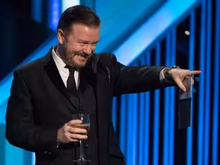 Gervais ha presentado los Globos de Oro en cinco ocasiones, ceremonias en las que escandalizó con sus atrevidas bromas sobre temas como la pederastia, el colectivo trans o la igualdad de género.