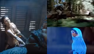 Probablemente este sea el mejor momento de Leia en toda la saga intergaláctica. Leia es capturada mientras intenta liberar a Han Solo del palacio de Jabba durante el Retorno del Jedi. Obligada a llevar el popular bikini que sería una de las principales fantasías de muchos hombres desde entonces, acaba estrangulando a su mórbido captor hasta la muerte.