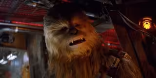 Y es que, en lo que concierne al rodaje, sí que ocurrió, pero no pasó la sala de montaje. Chewbacca mutilaba a Unkar Plutt en el Castillo de Maz Kanata en el planeta Takodana en parte por defender a Rey y en parte porque el personaje interpretado por Simon Pegg le estaba tocando mucho los... pelos.