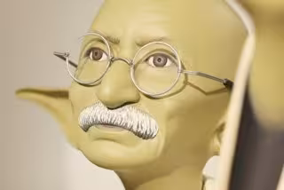 El artista Michael Leavitt ha encarnado en la piel de los clásicos Yoda, Luke Skywalker, Darth Vader entre otros, a personajes como Obama, Angelina Jolie o Steve Jobs. ¿El resultado? Unas esculturas con las que reflexiona acerca de los recurrentes patrones de nuestra civilización y la necesidad compulsiva de tener heroes y villanos de forma repetitiva a lo largo del tiempo.