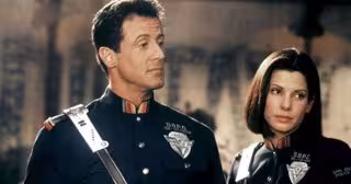 Sylvester Stallone y Sandra Bullock en Demolition Man - SILVER PICTURES.