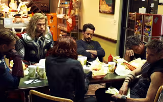 Group Hug, fue el falso título que escogió la productora para la cinta, evitando así la visita de curiosos a sus set de rodaje. Y sí, un grupo era, aunque más que abrazos daban tortas, y pasaban hambre... tanta que Iron Man propone comerse un Shawarma. ¿Adivináis dónde le surgió la idea?