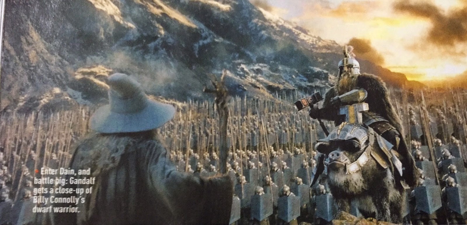 Además, Dáin, Pie de Hierro -interpretado por Billy Connolly-, aparece en una de las seis nuevas imágenes de la película, que se presentó el lunes en Londres, al frente de un gran ejército de enanos que marcha contra las hordas de Sauron.