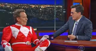 Bryan Cranston, en otro de sus golpes de genialidad, acudió este martes al programa estadounidense The Late Show, presentado por el cómico Stephen Colbert, disfrazado de Power Ranger Rojo. El antaño protagonista de la ya mítica Breaking Bad está inmerso en la promoción de la nueva película de Power Rangers en la cual da vida a Zordon.