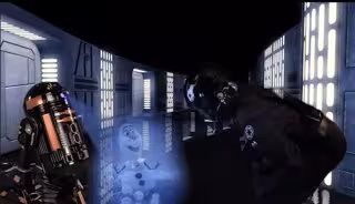 El vídeo termina con un plano pared contra pared de ambos personajes, con un derrumbado Vader emitiendo su característica respiración mecánica.