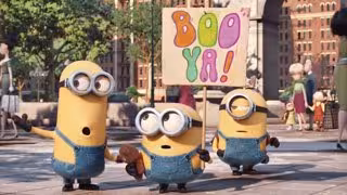 "Matocaaaa" le responde Bob a su compañero minion Kevin, dejando claro que se muere de hambre. Los tres protagonistas llevan navegando tanto, que Stuart acaba creyendo que sus compañeros son plátanos que se puede comer. Entonces, el clip nos lleva hasta el Nueva York de 1968.