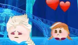 "Érase una vez en el reino de Arendelle... en el que vivían dos hermanas", así comienza la curiosa adaptación de esta película, con dos mensajes de texto en el fondo de un teléfono móvil. Después de esto, y a través de emoticonos, Disney logra relatar toda la película ambientada en un reino que se está congelando por una maldición.