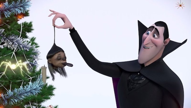 En el clip, de apenas medio minuto de duración, vemos a Drácula junto a su hija Mavis decorar el árbol de Navidad con cabezas jíbaras en lugar de las relucientes típicas bolas de siempre.