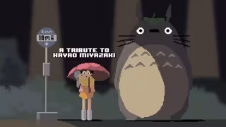 Desde la pequeña protagonista de Ponyo, o las extrañas criaturas de El viaje de Chihiro, todas las creaciones de Miyazaki terminan por reunirse con su creador, cuyo personaje creado en forma de píxel nos sonríe para finalizar clip.