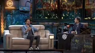 Porque primero empieza charlando con David Broncano sobre la camiseta solidaria del WiZink Center y On Stage -que el músico le regala al presentador-, para pasar luego a comentar sobre el 'pelazo' de Ubago.