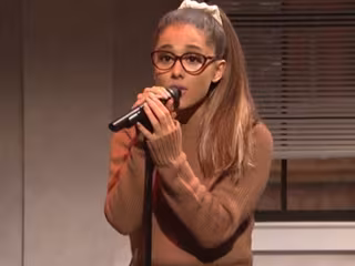 Como suele ser habitual, el sentido del humor fue la pauta de la velada con Ariana, además, protagonizando un divertido sketch en el que imita con pasmosa solvencia a algunas otras divas como Britney Spears, Shakira, Rihanna, Céline Dion y Whitney Houston.
