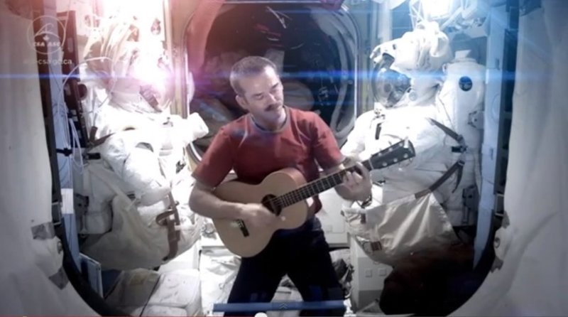 El astronauta canadiense Chris Hadfield ha cumplido el sueño de todo melómano fan de David Bowie. A bordo de la Estación Espacial Internacional, donde ha permanecido seis meses, ha interpretado la famosa canción 'Space oddity'.