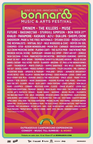 Eminem, Muse y The Killers encabezan la propuesta del festival, que también tendrá a Future, Sturgill Simpson, Bon Iver, Paramore, Alt-J, Anderson .Paak & The Free Nationals, Chic featuring Nile Rodgers, Sheryl Crow, Chromeo, Khalid, Brockampton, Broken Social Scene, Mavis Staples, Thundercat, First Aid Kit y Denzel Curry.