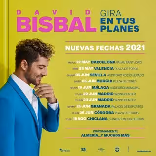 Como consecuencia del estado de alarma que continua vigente, "y a la espera de que el Gobierno y las autoridades competentes anuncien nuevas medidas en materia de espectáculos", GTS, AA MANAGEMENT y las empresas promotoras de la gira de David Bisbal confirma su aplazamiento a 2021 "con el objetivo de ofrecer las máximas garantías sanitarias y seguridad a los asistentes".
