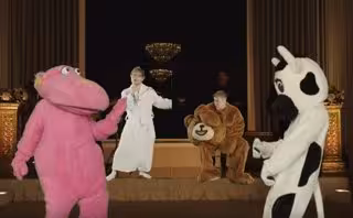 MADRID, 17 May. (CulturaOcio) - Más de 60 millones de escuchas en Spotify en una semana hacen pensar que I don't care, la colaboración estelar entre Ed Sheeran y Justin Bieber, se postula desde ya a una de las canciones más populares del verano. Para ayudar a ello, el británico y el canadiense estrenan un divertido videoclip en el que sacan todo el partido a las posibilidades del croma para, seguramente sin haber coincidido en ningún momento, entregar una pieza simpática para sus fans. En ella, Ed canta en albornoz, retoza al borde de una piscina, se disfraza de oso panda, de plátano y de astronauta. Por su parte, Justin vuela en una alfombra mágica, se convierte en mazorca de maíz, en helado de cucurucho y en extraño unicornio. Al final terminan todos bailando vestidos de vaqueros del viejo oeste y Ed Sheeran vestido de novia incluso se casa con un Justin Bieber de cartón (y jovenzuelo). Resulta todo tan desenfadado que casa a la perfección con la canción.