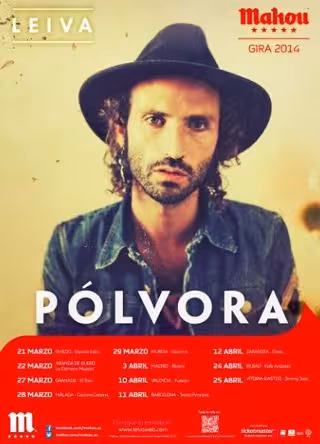 Esta nueva gira de Leiva se llama oficialmente 'Pólvora Gira Mahou 2014' y está patrocinada por Mahou Cinco Estrellas. Las entradas para todos los conciertos se pueden comprar a partir de este mismo miércoles en Taquillamediaset hasta el 10 de febrero. Después estarán también disponibles en Ticketmaster.