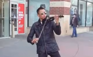 El primero que os presentamos es Bryson Andres. Con su electroacústico violín, este artista va creando la canción sobre la marcha a base de samples que va grabando y que se van reproduciendo uno tras otro (a esta técnica se le llama loop, que significa bucle). Nacido hace 21 años en Hawaii, de padres Filipinos, en la actualidad vive en Anchorage (Alaska), donde ha sido grabado este vídeo.