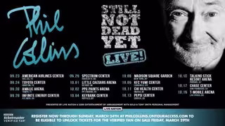 Después de empezar el año con una serie de conciertos en Oceanía, Phil Collins anuncia ahora más conciertos por territorio estadounidense con su gira Still not dead yet, continuación de la del pasado año, Not dead yet, que le mantuvo todo 2018 en la carretera.
