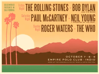 Ahora se confirma que del 7 al 9 de octubre se reunirán en el Empire Polo Grounds de Indio (California) nombres tan ilustres como The Rolling Stones, Paul McCartney, Roger Waters, The Who, Bob Dylan y Neil Young. Todos en un festival denominado genéricamente Desert Trip.