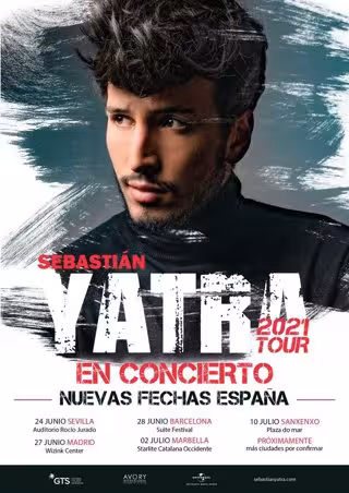 Como consecuencia del estado de alarma que continúa vigente y a la espera de que el Gobierno y las autoridades competentes anuncien nuevas medidas en materia de espectáculos, GTS y AVORY, promotores de la gira Sebastián Yatra en España, lamentan informar que la gira del colombiano se aplaza al próximo año 2021 con el objetivo de ofrecer las máximas garantías sanitarias y de seguridad a los asistentes.