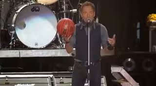 Por eso, la actuación arrancó con un salto entre Springsteen y el guitarrista Nils Lofgren luchando por hacerse con un balón de baloncesto que, poco después, acabaría inevitablemente siendo lanzado al público.