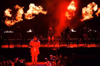 Kendrick Lamar, que aparece en la versión en estudio del tema, también saltó al escenario por sorpresa para recitar sus versos, antes de terminar junto a Beyonce en la piscina en un final épico repleto de energía.