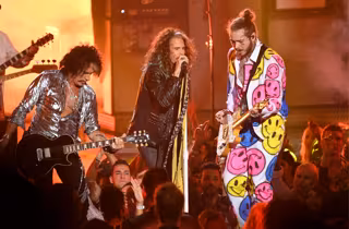 El rapero de 23 años primero interpretó su propio éxito Rockstar acompañado por Savage 21, antes de presentar a Aerosmith, colgarse una guitarra y cambiar completamente de registro para ponerse a rockear con vehemencia junto a las leyendas de Boston.