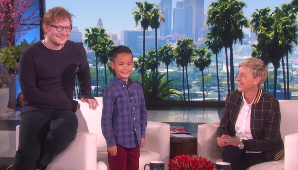 Y antes de coger el micrófono, el inglés dio una sorpresa a un joven fan de ocho años que había interpretado previamente ante las cámaras otro de los éxitos de Sheeran, Thinking out loud.