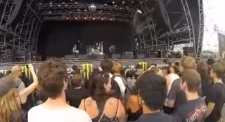 Y es que el cantante del grupo, en pleno frenesí por la actuación, comenzó a arrojar todo tipo de objetos al público, incluyendo su pie de micrófono, bocinas e incluso una tetera con agua hirviendo.