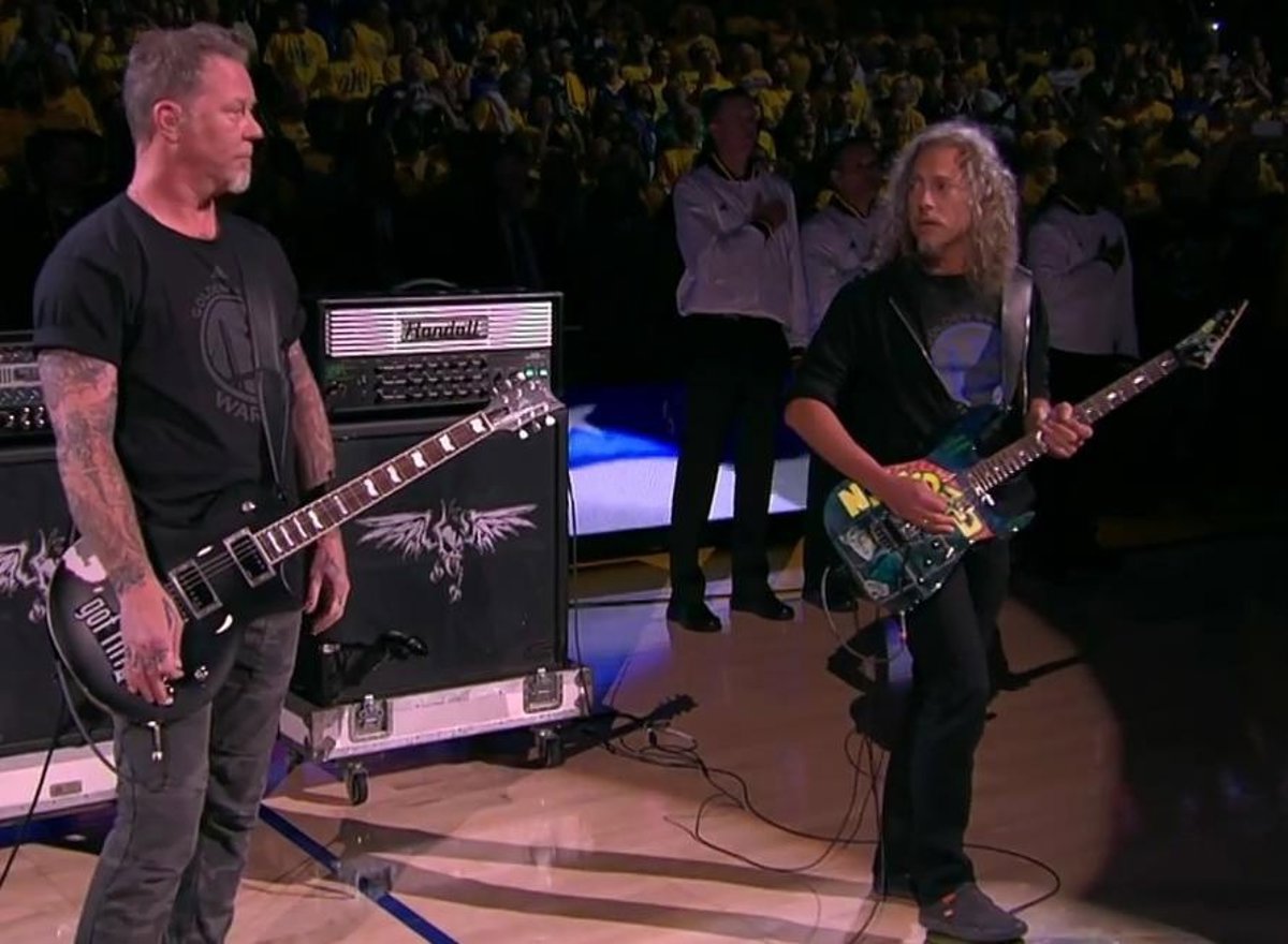 En esta ocasión, los guitarristas James Hetfield y Kirk Hammett han interpretado el himno de Estados Unidos antes de un partido de los Golden State Warrios contra los Cleveland Cavaliers, perteneciente a las finales de la NBA.