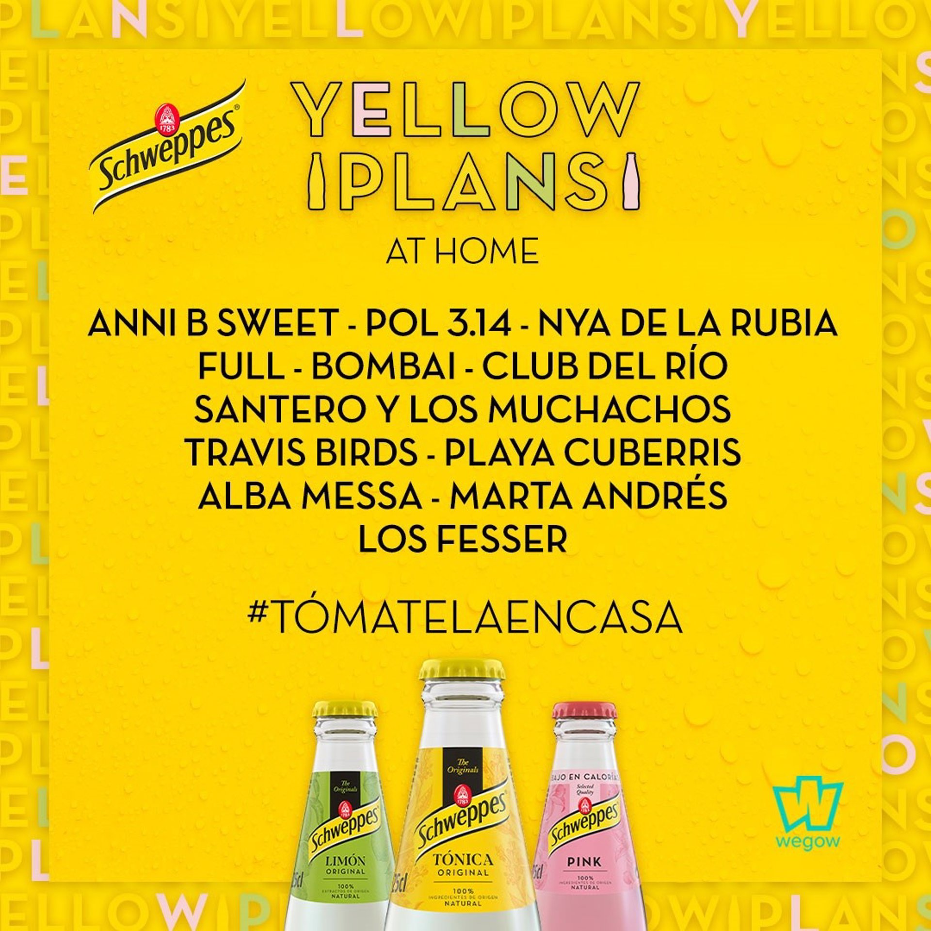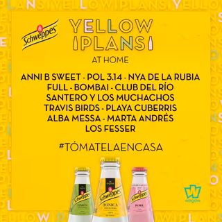 Los YellowPlans, creados por Schweppes y Wegow, comienzan en abril con un ciclo de conciertos gratuitos en streaming y continuarán en junio, septiembre, octubre y noviembre con conciertos presenciales.