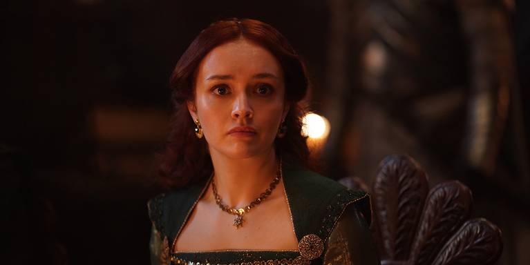 Alicent es la hija de Otto Hightower, la Mano del Rey, y la segunda esposa de Viserys I. Aunque se la considera la mujer más hermosa de los Siete Reinos, no es solo una cara bonita, pues posee tanto una gracia cortesana como una aguda perspicacia política. Tras este personaje se encuentra Olivia Cooke, conocida por la serie Bates Motel o películas como Ready Player One, Él, yo y Raquel y Sound of Metal.