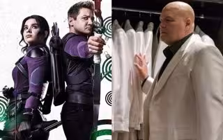 Por su parte, Ojo de Halcón y Kate Bishop aparecen vestidos con sus icónicos uniformes de combate mientras que, asomando por una la esquina, hace su aparición Daredevil vistiendo la misma armadura con la que aparecía en la serie de Netflix.