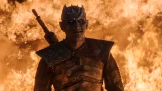 En La larga noche, Daenerys, a lomos de Drogon, se enfrenta al líder de los Caminantes Blancos después de que este haya caído tras montar a Viserion. Tras de pronunciar su ya mítico "dracarys", el dragón de la khaleesi desata un torrente de fuego sobre el comandante de los Caminantes Blancos. Evidentemente, la Targaryen cree que ha reducido al villano a cenizas. Sin embargo, sale completamente ileso y dibuja una sonrisa burlona en su rostro.