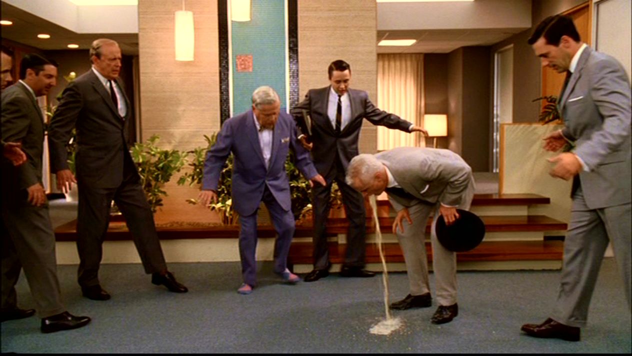 Las grandes cantidades de cigarrillos y whisky que consumen Don Draper y Roger Sterling no han sido el peor enemigo para su estómago. Un atraco de ostras y Martini y un ascensor roto acabará con Roger subiendo a pie las escaleras hasta la oficina y vomitando a los pies de los ejecutivos con los que tenía una reunión.