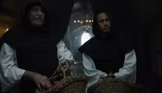 Entonces, el hermano del Profesor pregunta al personaje de Neymar, en portugués: "¿Cómo estás, Joao? ¿Cómo te está yendo con los cantos gregorianos?". El joven monje responde: "Una cosa celestial, señor Andrés". Después, tanto Joao como su compañero Giovanni se despiden, dejando a Berlín y al Profesor seguir con sus asuntos.