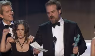 La aclamada serie familiar del popular servicio de streaming celebró con la felicidad improvisada y sin recatos de un niño su primer gran premio. Un galardón otorgado por el Sindicato de Actores, cuya gala fue el escenario ideal para que algunos intérpretes cargasen contra las polémicas políticas de Donald Trump. Desde uno de los protagonistas de The Big Bang Theory hasta el paternalista sheriff de Stranger Things, David Harbour, que lo hizo con un inspirador discurso.