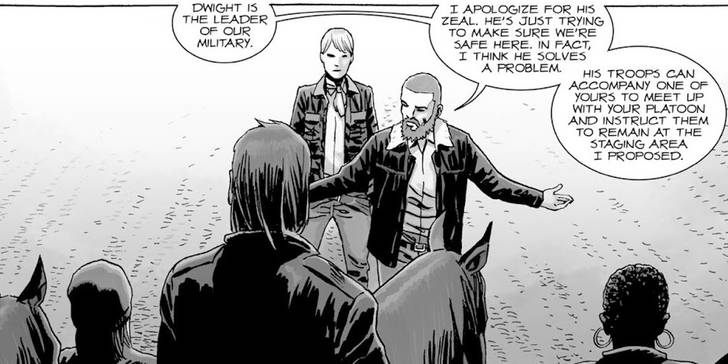 En la historia actual del cómic, Commonwealth parece ser la sociedad perfecta, un paraíso al que Michonne se ha mudado para estar con su hija que creía muerta. Un grupo de Commonwealth, con su líder Pamela al frente, visita Alexandria a cambio de aprender más y ofrecerles la oportunidad de unirse. Sin embargo, no son bien acogidos. Dwight trata de intimidarla, pero Rick los protege. Aún así, les niega la entrada.