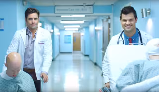 Este teaser de la segunda entrega de Screem Queens sirve para que las dos nuevas incorporaciones de la serie, Lautner y Stamos, hagan su debut de la forma más excéntrica: ambos aparecen ataviados con batas de médico mientras llevan en silla de ruedas a dos pacientes -más muertos que vivos- por el pasillo de un hospital.