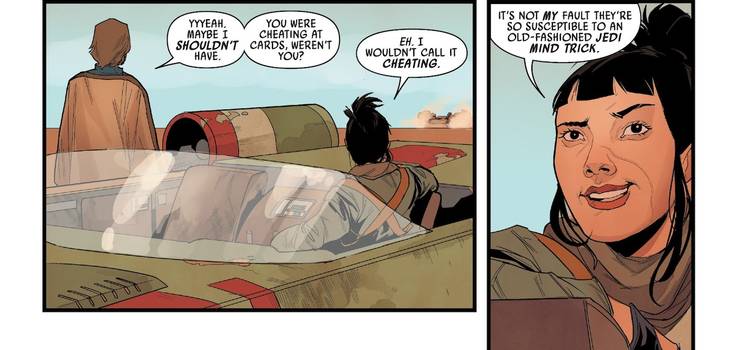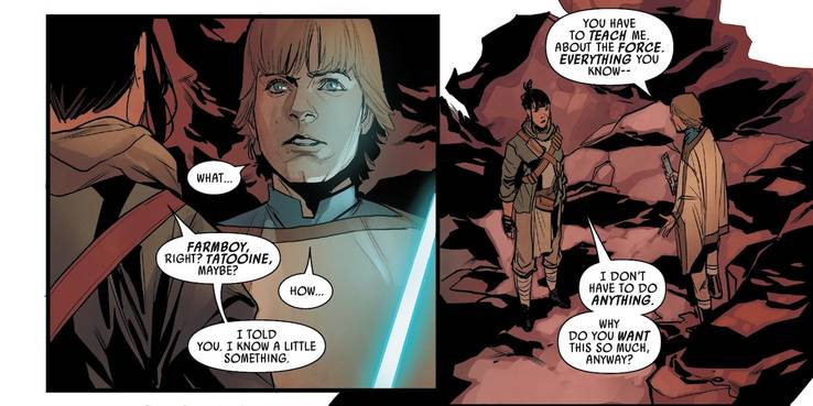 La sorpresa viene cuando Warba le revela a Luke que en realidad no es una Jedi, sino una joven normal capaz de usar la Fuerza, revelándole el gran secreto que luego le transmite a Rey. También le advierte de los peligros del lado Oscuro y Luke se muestra celoso de que una persona normal tenga semejante domino de la Fuerza, por lo que se propone convertirse él mismo en un Maestro Jedi.